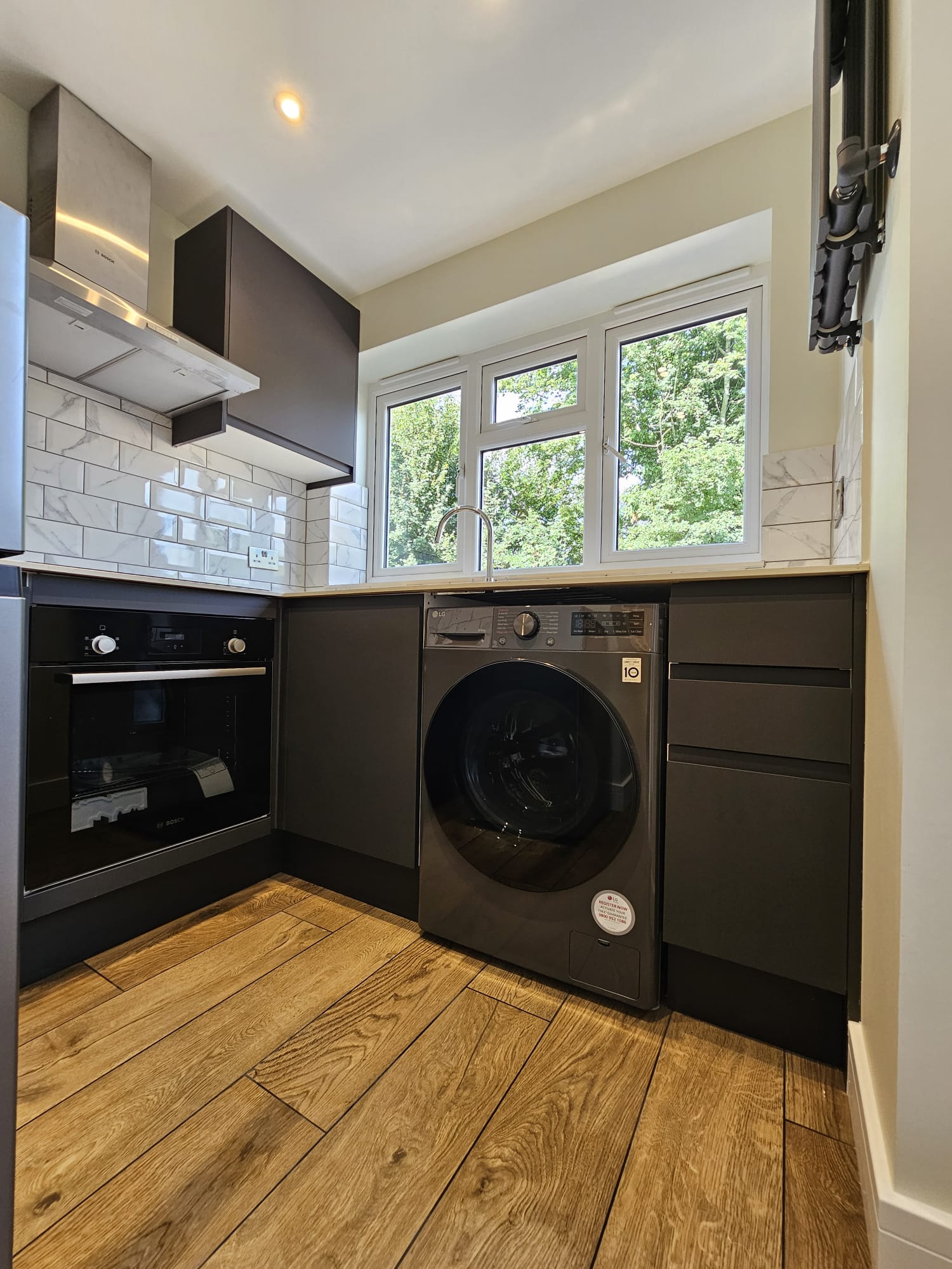 Complementing the rear extension is a new modern open-plan living room seamlessly integrated with a kitchen, epitomizing the concept of fluidity and versatility in contemporary living. Our meticulous attention to detail ensures that every aspect of the design enhances functionality while exuding sophistication and style.