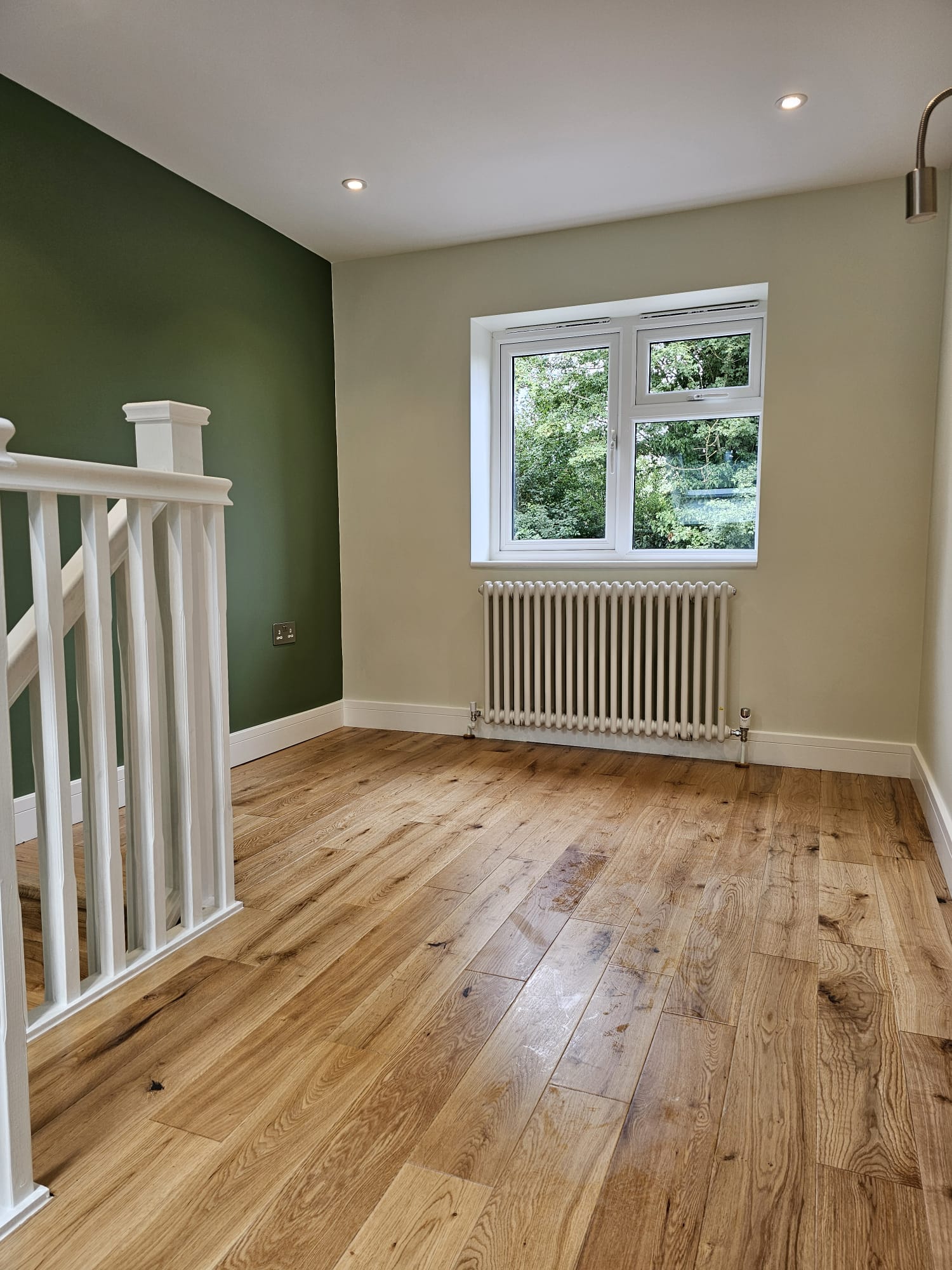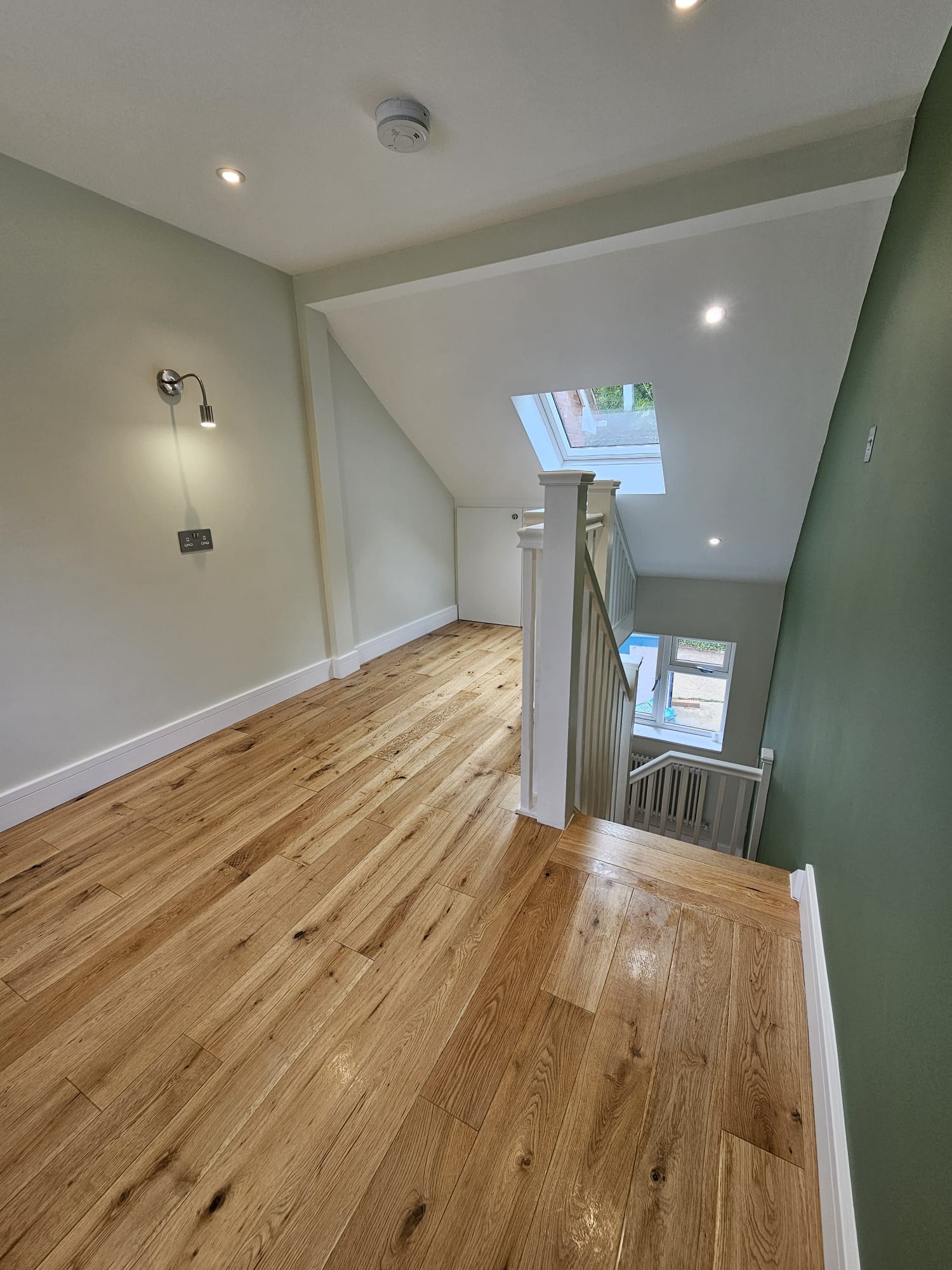 The centerpiece of our transformation lies in the creation of a modern rear extension, adorned with a striking Velux window that bathes the interior in natural light while offering breathtaking views of the surrounding landscape. This addition not only expands the living space but also serves as a testament to our commitment to marrying form with function.