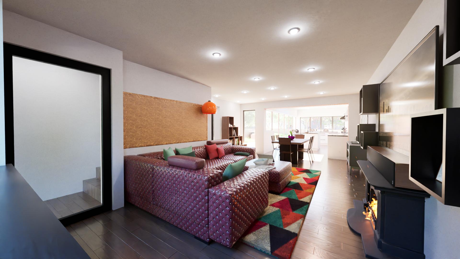 Within the confines of this revamped bungalow, a new modern open-plan living room seamlessly transitions into a sleek kitchen, redefining the concept of communal living. Here, every detail has been meticulously curated to foster an atmosphere of warmth and conviviality, where family and friends can gather and create lasting memories.