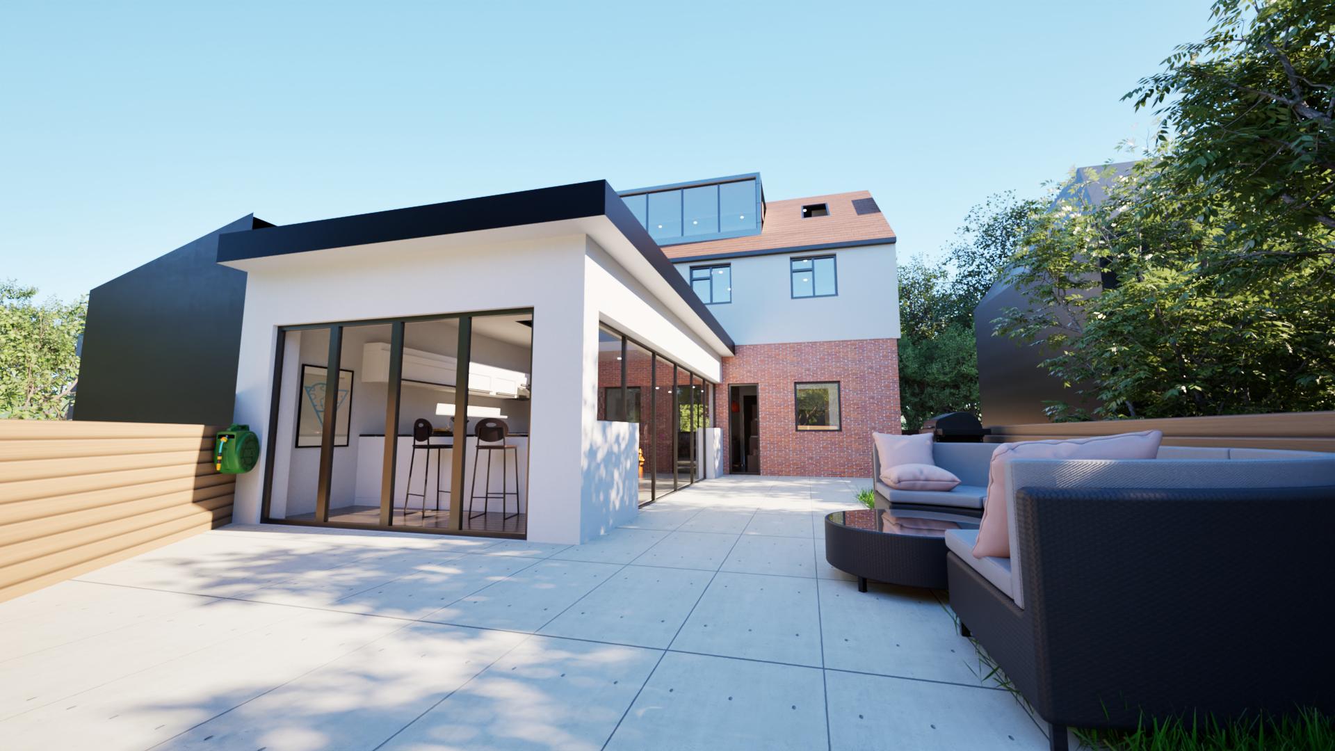 Guided by the client’s vision, our objective is to craft a transformative journey for Bellissimo House. The brief calls for the creation of a dynamic two-story side and rear extension, aimed at expanding the internal footprint of the dwelling. With a keen focus on enhancing livability, the proposed design entails the conversion of an existing bedroom into a spacious master suite, strategically positioned towards the rear of the house. Additionally, the project aims to infuse the interiors with abundant natural light and foster a seamless flow through the integration of an open-plan kitchen and dining area on the ground floor.